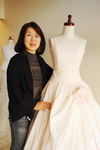 最初に私の美濃和紙のウエデングドレスをお買い上げいただいたのは、私が出演したテレビを見た方で、自分の娘が嫁ぐ時には、他人とは違うオリジナルのドレスを着せたいと思われていたそうです。書道家でもあり、美濃和紙の素晴らしさをご存知でした。とても気に入っていただき8年後、下の娘さんのウエデイングドレスも作らせていただきました。