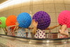 受験に失敗したあと、図書館で嶋本昭三さんの本を読み、この人に師事したいと決意したLOCOさん。実は先生のほうからも「是非私の弟子に」といわれました。当事、大学の教授でもあった嶋本先生は、挫折を経験して「悔しい」という気持を持っていたLOCOさんに、学生にはない熱意を感じ「見込みがある」と思われたのだとか。自分にしかできないことを模索する中で、人と人とのつながりを大切にしたい、紙コップを使って表現できないかと思いつきます。紙コップを使った作品によるパフォーマンスや、糸電話を使ったワークショップを開くようになりました。こうした活動が新聞に取り上げられ、その後は口コミで広がり、施設や学校、博物館などから依頼がくるようになりました。また、LOCOさんは地域の活性化にも紙コップアートが活用できないかと考え、観光パンフレット制作に乗り出します。コップで出来たアフロヘアの「コップ人間」が町を訪ね、地元の人では気がつかない町のよさを発見していく。というものです。こうして紙コップアーティストとしての活動が確立されていきました。
