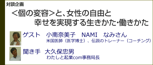 テーマは、<個の変容>と<女性の自由と幸せを実現する生きかた・働きかた>です。